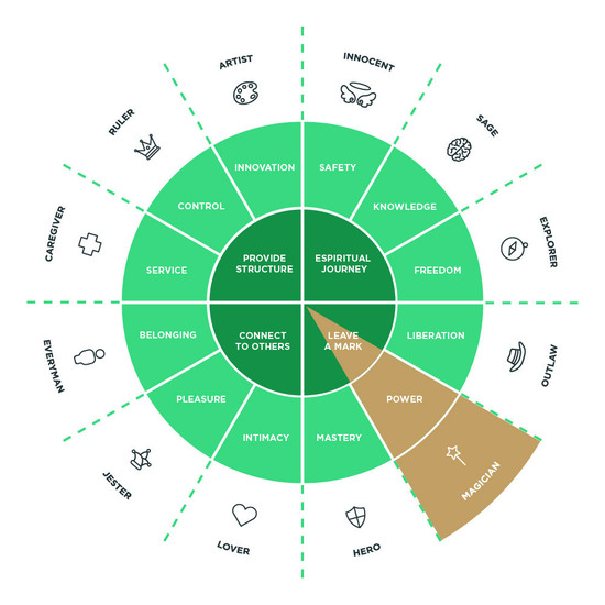 Mapped on the classic archetype wheel, GO embodies “The Magician”. Our best work is often done in the background. Many, if not most, of the creative complexities and strategic machinations are often unseen, but the end results empower our clients to make a positive impact for their business, and hopefully the world.